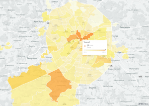 Больше всего таких мест сосредоточено в Тверском районе — 232 точки (17% от всех организаций этих сфер в районе). В тройке лидеров также Басманный район (225 точек, 19%) и Коммунарка (199 компаний, 14%). Далее идут Пресненский (187 точек, 15%) и Таганский районы (157 мест, 20%).
