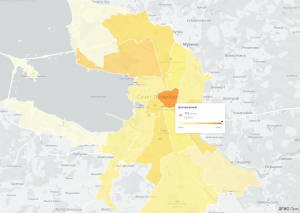 Больше всего таких мест сосредоточено в Центральном районе — здесь работает 718 точек (25% от всех организаций этих сфер в районе). В тройке лидеров также Приморский (398 точек, 17%) и Московский (345 компаний, 20%). Далее идут Невский (338 точек, 22%) и Выборгский (334 места, 17%) районы.