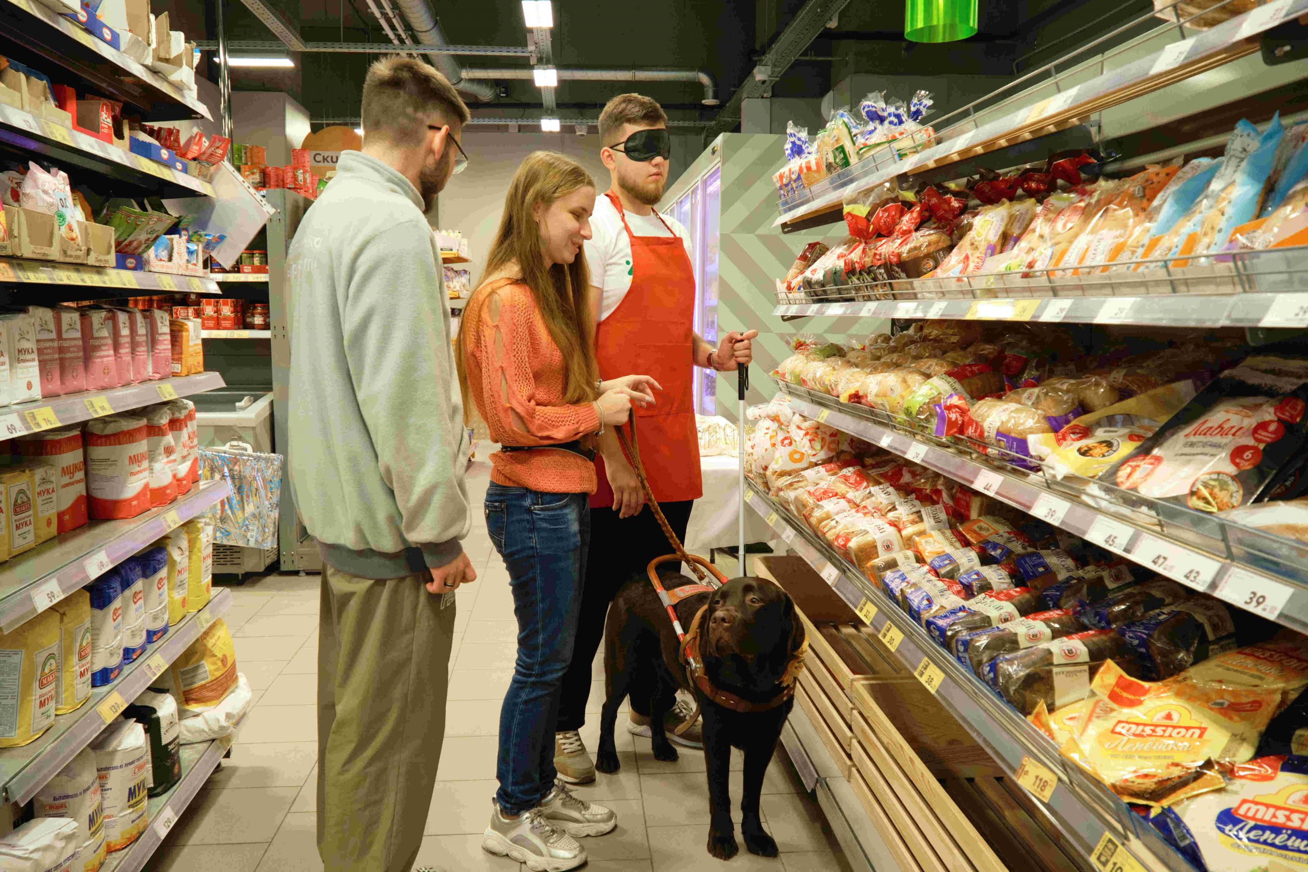 Магазин на пр. Ворошиловском, д. 82/4 на один день превратился в место, где посетители в интерактивном формате развивали эмпатию к слепым и слабовидящим людям. Гости могли надеть повязку на глаза и познакомиться с азбукой Брайля, научиться ориентироваться в пространстве с тростью и собакой-поводырем, сыграть в лото на восприятие вкусов, запахов и текстуры предметов. Все активности были направлены на то, чтобы более глубоко понять, как живут, передвигаются и совершают покупки ростовчане с нарушениями зрения. Проводником этого уникального опыта стала студентка ДГТУ Екатерина Кудрина — вместе со своим помощником-лабрадором Шерлоком, она совершенствует инклюзивную культуру в обществе.