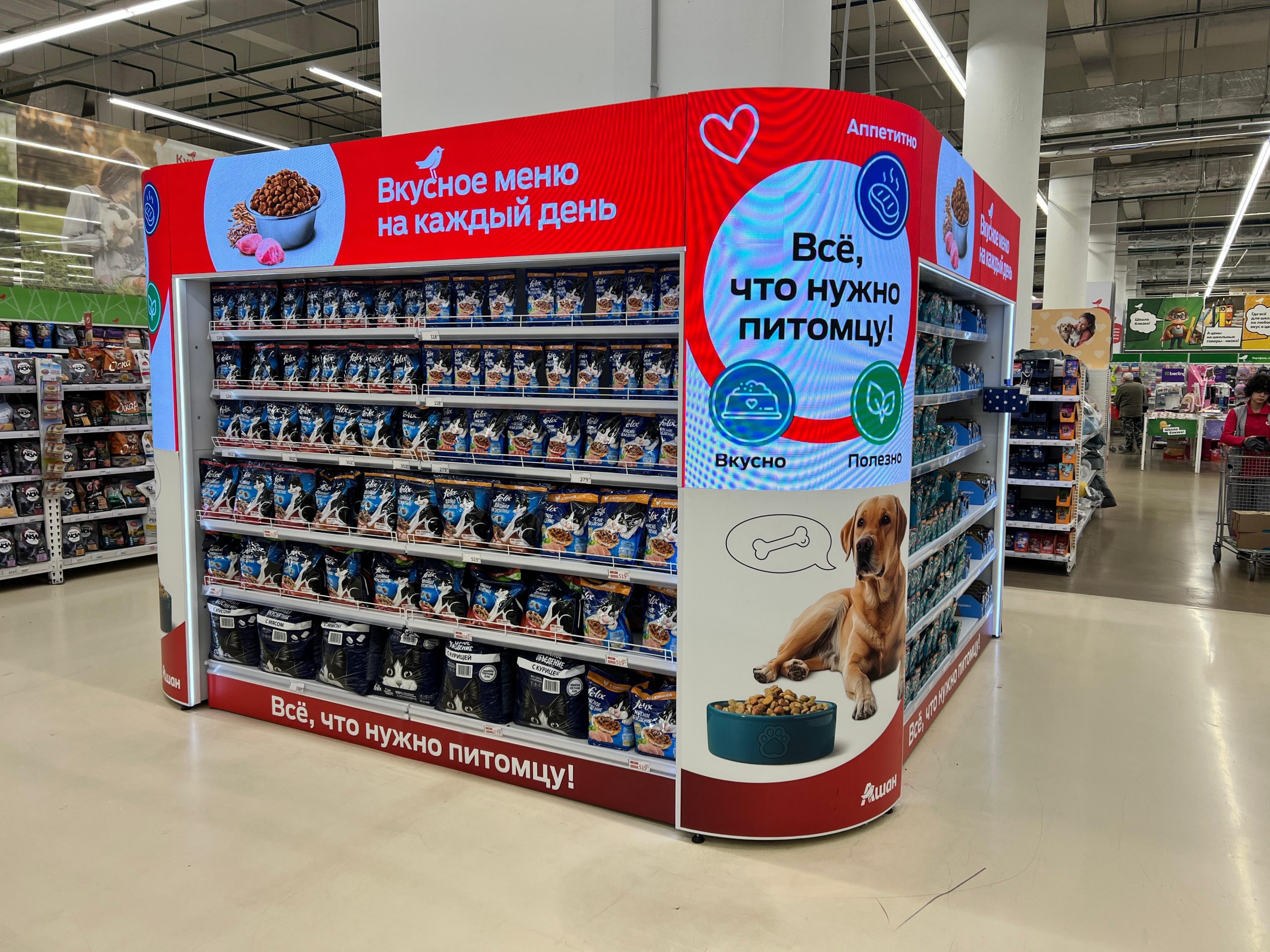 В современном ритейле визуальная коммуникация становится ключевым инструментом привлечения внимания покупателей. Яркий пример инновационного подхода — digital-зона в категории «Корма для животных» в московском гипермаркете «АШАН Лефортово», реализованная компанией IAM.