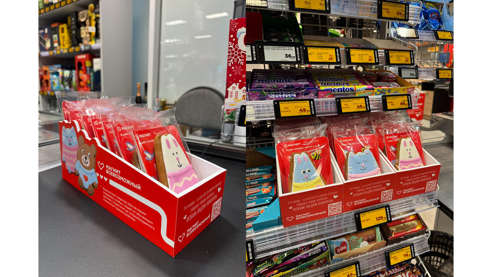 «Многие взрослые люди с особенностями интеллектуального и психического развития могут и готовы работать, но не каждому из них удается раскрыть свой потенциал и реализовать себя. Особенности здоровья ограничивают способность таких людей к общению, но зачастую вознаграждают их даром творческой продуктивности. Творчество – это возможность для них проявить себя, найти призвание и поддержку. Проект «Добрый пряник» в «Магните» позволяет любому подарить шанс тем, кто особенно в этом нуждается: пряники созданы по рисункам художников с ментальными особенностями из проекта «Наивно? Очень», и каждая покупка — вклад в их будущее».