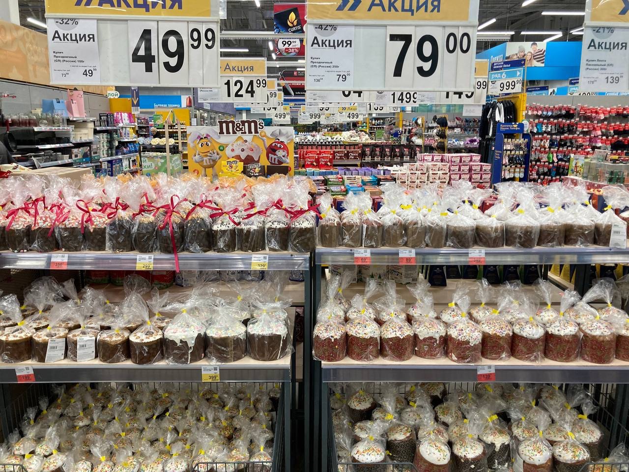 Пик спроса на куличи приходится на четверг, пятницу и субботу перед пасхальным воскресеньем. Кроме праздничной выпечки в магазинах традиционно можно приобрести крашеные яйца и творожные пасхи.