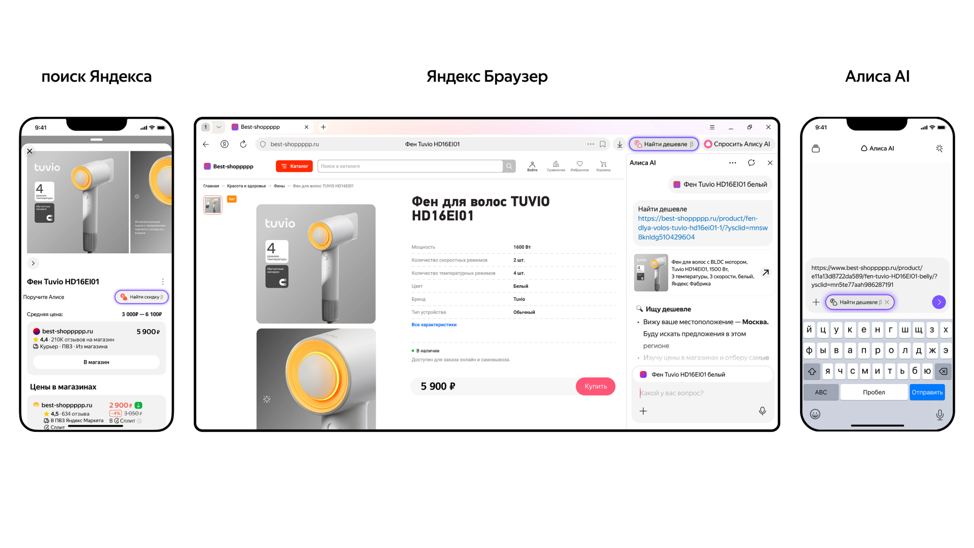 Пользователи могут поручить ИИ найти любые товары, и он автоматически изучит миллиарды предложений на онлайн-площадках с учётом региона покупателей и наличием товаров для заказа. В результате агент «Найти дешевле» показывает подборку выгодных предложений на разных площадках — от интернет-магазинов и маркетплейсов до локальных продавцов. Нейросеть учитывает не только базовую цену товара, но и другие факторы, влияющие на экономию, — например, скидки, которые предлагают маркетплейсы и интернет-магазины в рамках распродаж. Что же касается персональных скидок, то в некоторых случаях пользователям может быть доступна скидка от Алисы, которая отображается в чате с нейросетью. Яндекс подсчитал, что «Найти дешевле» позволяет в среднем экономить 25% на покупке — это около 6000 рублей***.