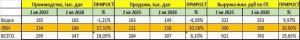 В то же время, ООО «КЛВЗ Кристалл» сократило производство и продажи водки – соответственно, на -1,21% и -8,59%. Несмотря на это, выручка компании в водочном сегменте все равно выросла благодаря росту отпускных цен – до 353 млн. руб. (+9,97% к январю-марту 2025 года).
