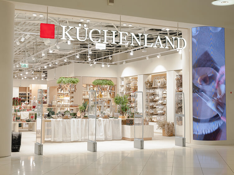 Магазин в ТРЦ «Авиапарк» — первый, где представлен новый визуальный стиль Kuchenland. Узнаваемые очертания логотипа сохранились, но стали более лаконичными и современными за счет простых форм и читаемой типографики.