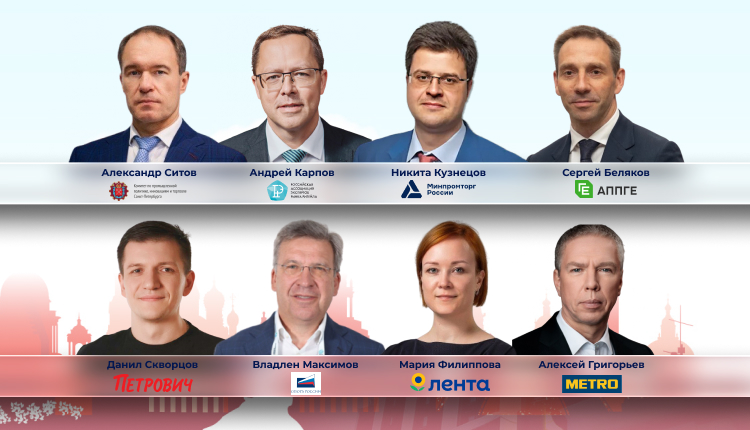 В обсуждении примут участие следующие спикеры: Никита Кузнецов, директор Департамента развития внутренней торговли Министерства промышленности и торговли Российской Федерации; Александр Ситов, председатель Комитета по промышленной политике, инновациям и торговле Санкт-Петербурга; Владлен Максимов, вице-президент «ОПОРА России», президент Ассоциации малоформатной торговли; Сергей Беляков, президент Ассоциации производителей и поставщиков готовой еды; Алексей Григорьев, заместитель генерального директора — директор по корпоративной внешней политике METRO Россия; Мария Филиппова, директор по связям с общественностью и государственными органами Группа «Лента»; Данил Скворцов, директор по стратегическому развитию СТД «Петрович».