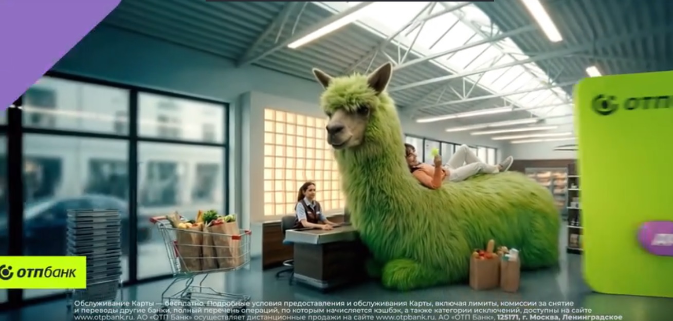 В первом ролике клиент ОТП Банка с комфортом отдыхает на спине огромной лаймовой ламы в пространстве супермаркета, во втором – расслабляется в уютной шерсти на спине хаски, расположенной в пространстве АЗС. При этом главным героем остается ОТП Карта – дебетовая карта ОТП Банка с кэшбэком на самые востребованные категории, включая супермаркеты, АЗС и прочие.