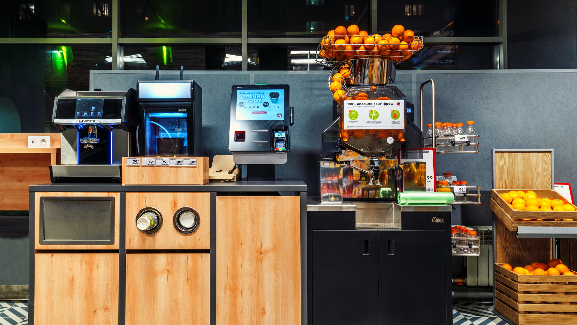 Ключевыми преимуществами свежемолотого кофе ритейлера являются доступная цена и высокое качество используемых ингредиентов. Для приготовления используются профессиональные кофемашины с высокой производительностью и длительным сроком службы. Благодаря этому гость получает готовый кофе меньше, чем за минуту, а порция, крепость напитка и дозировка молока всегда стандартная.