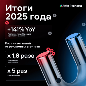 Авито Реклама представила итоги прошлого года: инвестиции рекламодателей в кампании на площадке выросли на 141% год к году. Объем инвестиций от сотрудничества с рекламными агентствами также увеличился: почти в два раза по итогам работы с сетевыми партнерами и в пять раз — с несетевыми.