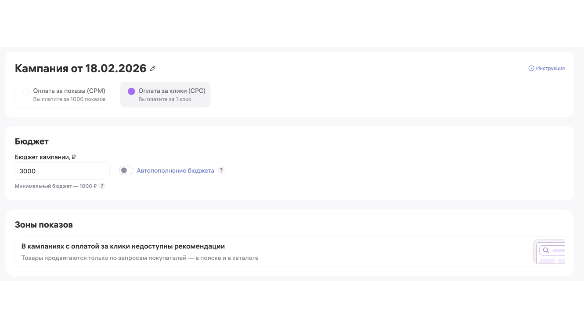 Данная модель подходит продавцам, которые предпочитают платить не за показы, а за целевые действия пользователей. Инструмент позволяет лучше контролировать расходы на продвижение, обеспечивая эффективность в высококонкурентных подкатегориях и не требует сложной настройки, автоматически оптимизируя показы под каждого пользователя. Система анализирует, в каких именно кластерах поисковых запросов и для каких сегментов покупателей карточка товара имеет наибольшую прогнозируемую конверсию и фокусирует бюджет на показах именно потенциальным покупателям.