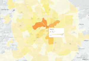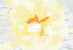 Распределение кофеен по районам Москвы — визуализация сервиса геоаналитики «2ГИС Про»