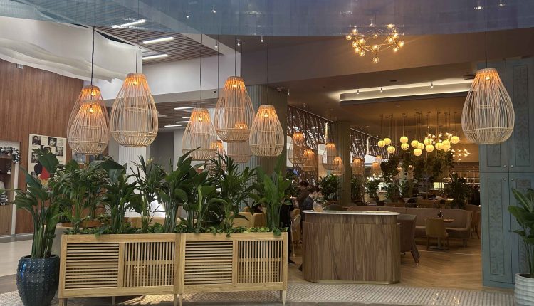Ресторан расположен на 4-м этаже, в холле кинотеатра «Синема Парк». Общая площадь составляет 519 м2.
