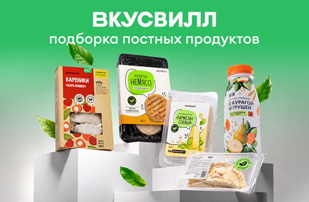ВкусВилл подготовил большую подборку постных продуктов для тех, кто хочет сохранить привычное разнообразие рациона во время Великого поста. В ассортименте — постные вареники с разными начинками, растительные полуфабрикаты, альтернативы молочным продуктам, десерты, выпечка и готовые сладости.